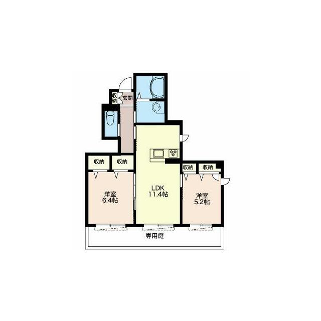 2LDK(LDK11.4帖 洋室6.4帖 洋室5.2帖) |