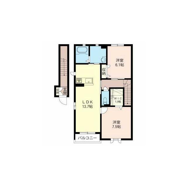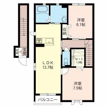 | 間取り | 2LDK(LDK13.7帖 洋室7.5帖 洋室6.1帖) | 主要採光面 | 南西 |